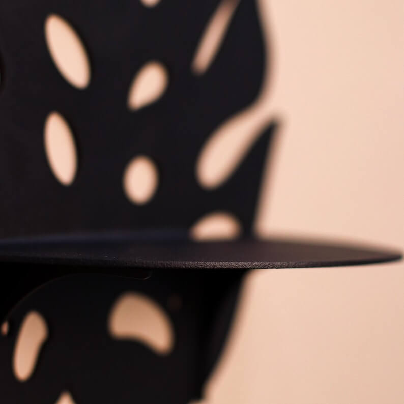 Crafted from metal, the shelf is finished with a powder-coated surface that helps protect against wear and maintains a consistent appearance. The laser-cut leaf shape and integrated shelf create a solid, unified structure. Each piece is handmade, giving subtle variation to the final result.