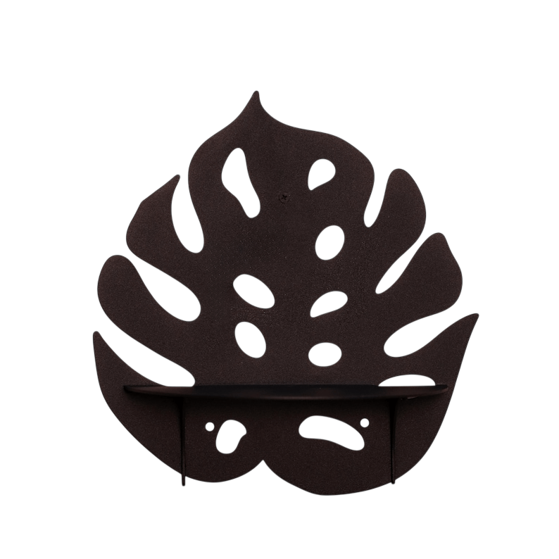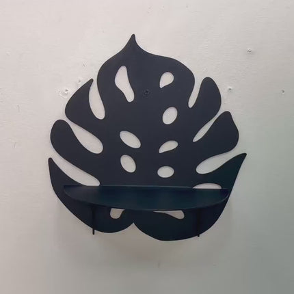 This metal monstera leaf wall shelf combines functional storage with a bold botanical silhouette. Designed as a decorative wall-mounted shelf, it adds a sculptural plant-inspired accent while providing space for small items or greenery.